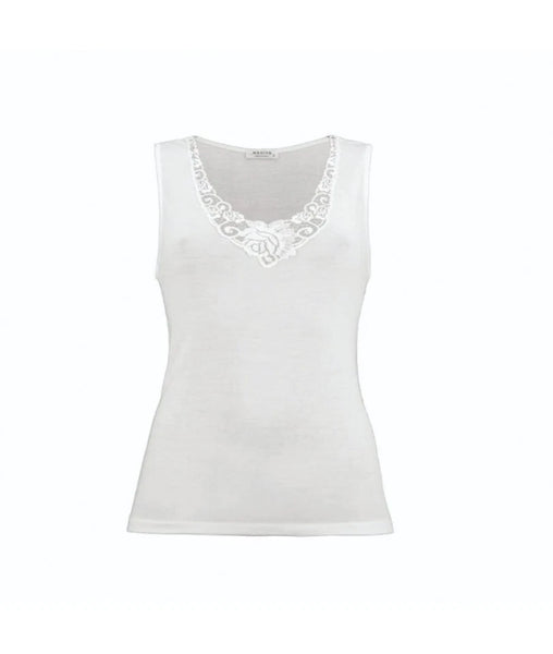 Madiva - canottiera spalla larga scollo V lana Agnese maglietta canotta intima con Inserti in pizzo maglia italiana